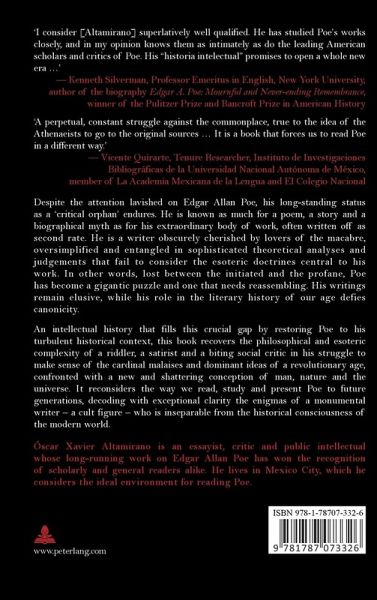 «I consider [Altamirano] superlatively well qualified. He has studied Poe's works closely, and in my opinion knows them as intimately as do the leading American scholars and critics of Poe. His 'historia intelectual' promises to open a whole new era ...» - Kenneth Silverman, Professor Emeritus in English, New York University, author of the biography Edgar A. Poe: Mournful and Never-ending Remembrance, winner of the Pulitzer Prize and Bancroft Prize in American History «A perpetual, constant struggle against the commonplace, true to the idea of the Athenaeists to go to the original sources ... It is a book that forces us to read Poe in a different way.» - Vicente Quirarte, Tenure Researcher, Instituto de Investigaciones Bibliográficas de la Universidad Nacional Autónoma de México, member of La Academia Mexicana de la Lengua and El Colegio Nacional