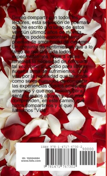 Deseo compartir con todos los lectores, esta selección de poemas que he escrito a lo largo de estos veintiún últimos años de mi vida. En ellos podéis encontrar tanto poemas de amor como de desamor. Un conjunto de sentimientos que a lo largo de nuestra vida todos experimentamos y que a veces tenemos la necesidad de compartir, tal vez como un medio para liberar nuestra alma de sufrimientos. O tal vez, por la necesidad que tenemos como seres humanos de compartir las experiencias con los seres que amamos y que nos rodean, para sentir que nos apoyan y que nos comprenden, en este camino que todos compartimos y al que llamamos "Vida".