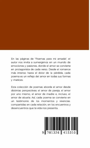 Poemas para mi amada lo conforman un conjunto de versos, que expresan los diversos sentimientos que se pueden abrigar hacia ese ser llamado mujer, en sus distintos roles sensitivos. Así, la eterna amada, representa el amor romántico de un hombre hacia una queridísima dama; la esposa, los emociones de amor, compañerismo y de superación en la vida matrimonial; la madre, el amor incondicional; la abuelita, aquel amor cómplice y desprevenido; finalmente, la pérdida, aquel amor sufrimiento por la pérdida de un ser querido. Esta colección de versos, los empezó a construir desde el mes de febrero del año 1985, visitando -cómo él dice- universos paralelos para lograr la inspiración necesaria para sentir, en carne propia, los sentimientos que son expresados en cada poema.