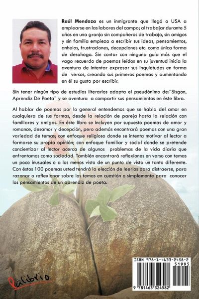Al hablar de poemas por lo general entendemos que se habla del amor en cualquiera de sus formas, desde la relación de pareja hasta la relación con familiares y amigos. En éste libro se incluyen por supuesto poemas de amor y romance, desamor y decepción, pero además encontrará poemas con una gran variedad de temas; con enfoque religioso donde se intenta motivar al lector a formarse su propia opinión; con enfoque familiar y social donde se pretende concientizar al lector acerca de algunos problemas de la vida diaria que enfrentamos como sociedad. También encontrará reflexiones en verso con temas un poco inusuales o a los menos visto de un punto de vista un tanto diferente. Con éstos 100 poemas usted tendrá la elección de leerlos para distraerse, para razonar o reflexionar sobre los temas en cuestión o simplemente para conocer los pensamientos de un aprendiz de poeta.