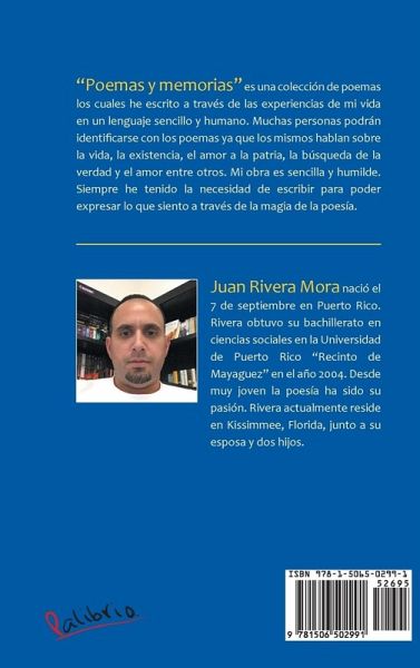 "Poemas y memorias" es una colección de poemas los cuales he escrito a través de las experiencias de mi vida en un lenguaje sencillo y humano. Muchas personas podrán identificarse con los poemas ya que los mismos hablan sobre la vida, la existencia, el amor a la patria, la búsqueda de la verdad y el amor entre otros. Mi obra es sencilla y humilde. Siempre he tenido la necesidad de escribir para poder expresar lo que siento a través de la magia de la poesía.