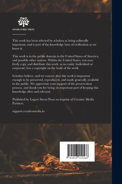 This work has been selected by scholars as being culturally important, and is part of the knowledge base of civilization as we know it. This work is in the "public domain in the United States of America, and possibly other nations. Within the United States, you may freely copy and distribute this work, as no entity (individual or corporate) has a copyright on the body of the work. Scholars believe, and we concur, that this work is important enough to be preserved, reproduced, and made generally available to the public. We appreciate your support of the preservation process, and thank you for…mehr