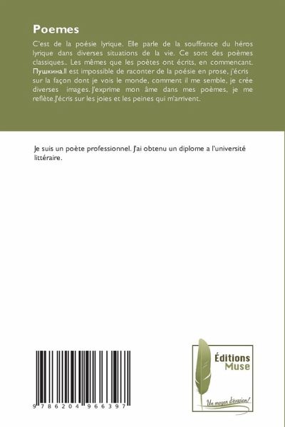 C'est de la poésie lyrique. Elle parle de la souffrance du héros lyrique dans diverses situations de la vie. Ce sont des poèmes classiques.. Les mêmes que les poètes ont écrits, en commencant. .Il est impossible de raconter de la poésie en prose, j'écris sur la façon dont je vois le monde, comment il me semble, je crée diverses images. J'exprime mon âme dans mes poèmes, je me reflète.J'écris sur les joies et les peines qui m'arrivent.
