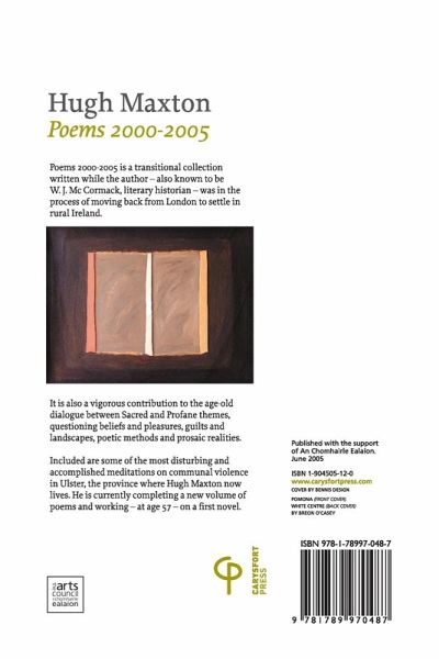 Poems 2000-2005 is a transitional collection written while the author - also known to be W. J. Me Cormack, literary historian - was in the process of moving back from London to settle in rural Ireland.