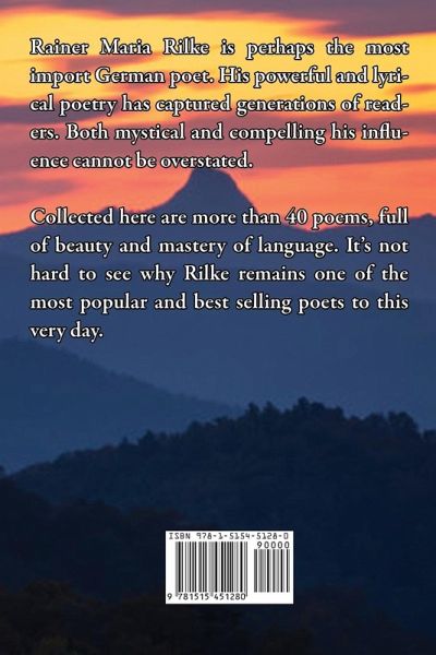 Rainer Maria Rilke is perhaps the most import German poet. His powerful and lyrical poetry has captured generations of readers. Both mystical and compelling his influence cannot be overstated. Collected here are more than 40 poems, full of beauty and mastery of language. It's not hard to see why Rilke remains one of the most popular and best selling poets to this very day.