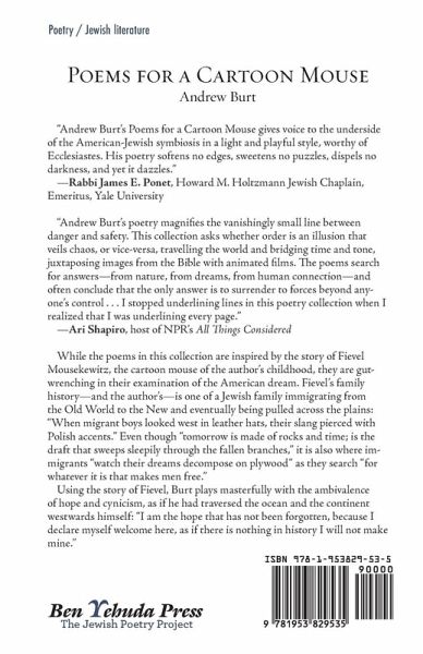 While the poems in this collection are inspired by the story of Fievel Mousekewitz, the cartoon mouse of the author's childhood, they are gut-wrenching in their examination of the American dream. Fievel's family history-and the author's-is one of a Jewish family immigrating from the Old World to the New and eventually being pulled across the plains: "When migrant boys looked west in leather hats, their slang pierced with Polish accents." Even though "tomorrow is made of rocks and time; is the draft that sweeps sleepily through the fallen branches," it is also where immigrants "watch their dreams decompose on plywood" as they search "for whatever it is that makes men free." Using the story of Fievel, Burt plays masterfully with the ambivalence of hope and cynicism, as if he had traversed the ocean and the continent westwards himself: "I am the hope that has not been forgotten, because I declare myself welcome here, as if there is nothing in history I will not make mine."