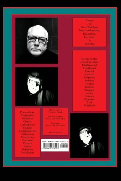 Poems for the: Disenfranchised; Disillusioned; Disaffected: Infected; Rejected; Desperate; Dateless; Loveless; Restless: Sleepless; Lonely; Outcasts; Shunned; Poor; Confused Poems about: Exploitation; Injustices; Cruelty; Unhappiness; Sadness; Discrimination; Infatuation; Conformity; Confusion; Poverty; Protest: Rebellion; Revolution