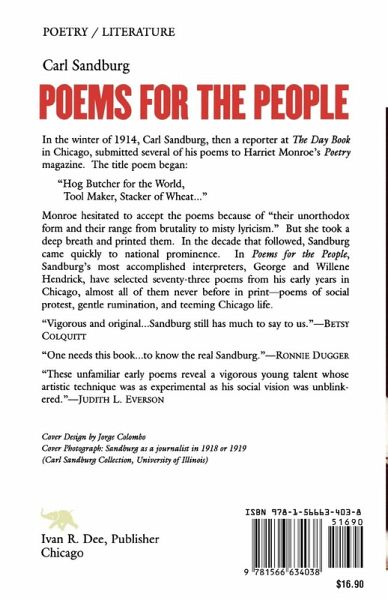 Seventy-three poems from Sandburg's early years in Chicago, almost all of them never before in print. They show him as a critic of fast-changing conditions in urban America; a walker in the city; a sensitive poet born to immigrant parents. These poems are a reminder of why we revere Sandburg as an authentic American voice. Edited with an Introduction by George and Willene Hendrick, Sandburg's most accomplished interpreters. "An absolutely exhilarating read...a genuine literary event, a virtual rediscovery of an American treasure."-Michael Van Walleghen.