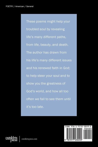 These poems might help your troubled soul by revealing life's many different paths, from life, beauty, and death. The author has drawn from his life's many different issues and his renewed faith in God; to help steer your soul and to show you the greatness of God's world, and how all too often we fail to see them until it's too late.
