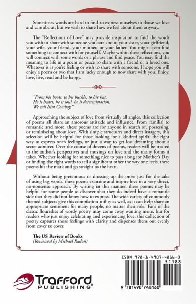 Sometimes words are hard to find to express ourselves to those we love and care about, but we wish to share how we feel about them anyway. The "Road of Reflections" may provide inspiration to find the words you wish to share with someone you care about; your sister, your girlfriend, your wife, your friend, your mother, or your father. You might even find something to connect with for yourself. Maybe within these reflections, you will connect with some words or a phrase and find peace. You may find the meaning in life in a poem or peace to share with a friend or a loved one. Whatever it is you're feeling or wish to share with someone, I hope you will enjoy a poem or two that I am lucky enough to now share with you. Enjoy, love, live, read and be happy.