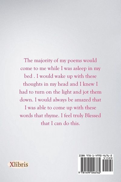 The majority of my poems would come to me while I was asleep in my bed. I would wake up with these thoughts in my head and I knew I had to turn on the light and jot them down. I would always be amazed that I was able to come up with these words that rhyme. I feel truly Blessed that I can do this.