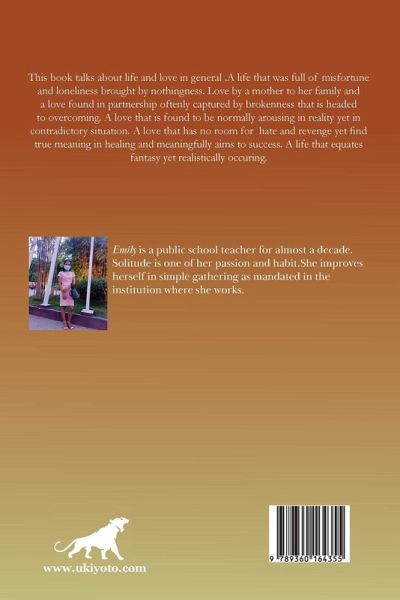 This book talks about life and love in general .A life that was full of misfortune and loneliness brought by nothingness . Love by a mother to her family and a love found in partnership oftenly captured by brokenness that is headed to overcoming . A love that is found to be normally arousing in reality yet in contradictory situation. A love that has no room for hate and revenge yet find true meaning in healing and meaningfully aims to success. A life that equates fantasy yet realistically occuring.