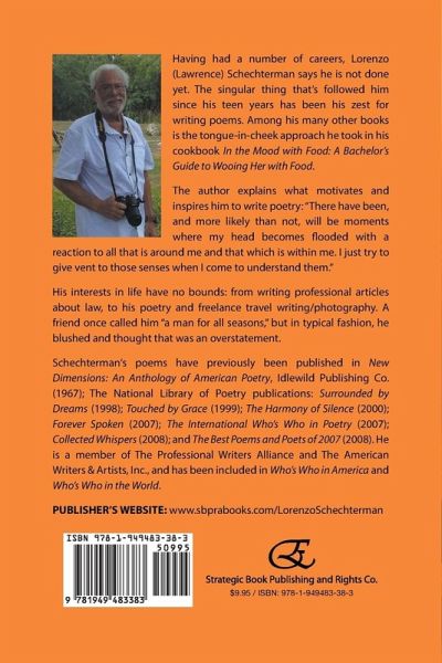 Having had a number of careers, Lorenzo (Lawrence) Schechterman says he is not done yet. The singular thing that's followed him since his teen years has been his zest for writing poems. Among his many other books is the tongue-in-cheek approach he took in his cookbook In the Mood with Food: A Bachelor's Guide to Wooing Her with Food. The author explains what motivates and inspires him to write poetry: "There have been, and more likely than not, will be moments where my head becomes flooded with a reaction to all that is around me and that which is within me. I just try to give vent to those senses when I come to understand them." His interests in life have no bounds: from writing professional articles about law, to his poetry and freelance travel writing/photography. A friend once called him "a man for all seasons," but in typical fashion, he blushed and thought that was an overstatement. Schechterman's poems have previously been published in New Dimensions: An Anthology of American Poetry, Idlewild Publishing Co. (1967); The National Library of Poetry publications: Surrounded by Dreams (1998); Touched by Grace (1999); The Harmony of Silence (2000); Forever Spoken (2007); The International Who's Who in Poetry (2007); Collected Whispers (2008); and The Best Poems and Poets of 2007 (2008). He is a member of The Professional Writers Alliance and The American Writers & Artists, Inc., and has been included in Who's Who in America and Who's Who in the World.