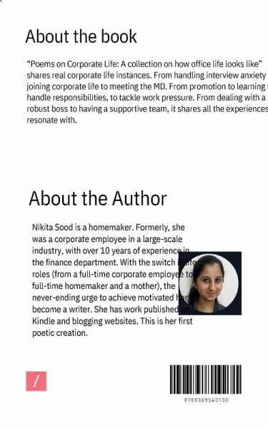 "Poems on Corporate Life: A collection on how office life looks like" shares real corporate life instances. From handling interview anxiety to joining corporate life to meeting the MD. From promotion to learning to handle responsibilities, to tackle work pressure. From dealing with a robust boss to having a supportive team, it shares all the experiences to resonate with.