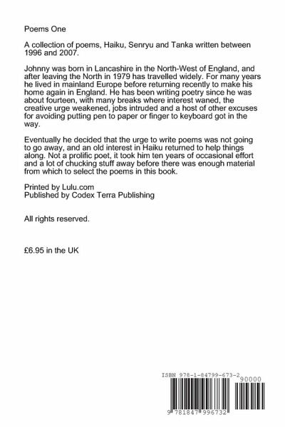 A collection of poems, Haiku, Senryu and Tanka written between 1996 and 2007. Johnny D was born in North Manchester, and after leaving the North in 1979 has travelled widely. For many years he lived in mainland Europe before returning recently to make his home again in England. He has been writing poetry since he was about fourteen, with many breaks where interest waned, the creative urge weakened, jobs intruded and a host of other excuses for avoiding putting pen to paper or finger to keyboard got in the way. Eventually he decided that the urge to write poems was not going to go away, and an old interest in Haiku returned to help things along. Not a prolific poet, it took Johnny D ten years of occasional effort and a lot of chucking stuff away before there was enough material from which to select the poems in this book. Now he can go back to being poetically lazy for another ten years.