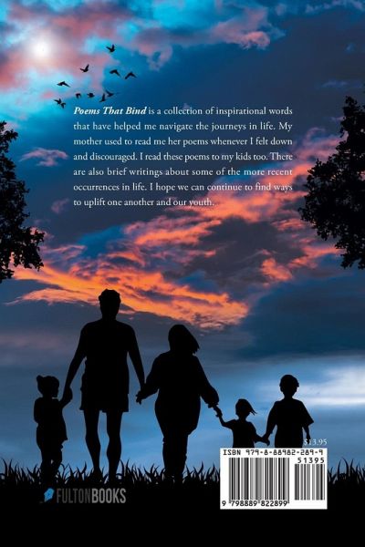 Poems That Bind is a collection of inspirational words that have helped me navigate the journeys in life. My mother used to read me her poems whenever I felt down and discouraged. I read these poems to my kids too. There are also brief writings about some of the more recent occurrences in life. I hope we can continue to find ways to uplift one another and our youth.