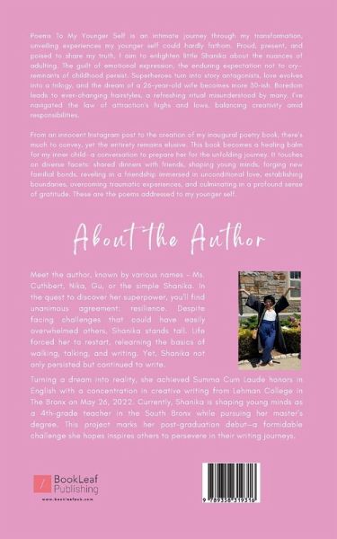 Poems To My Younger Self is exactly that. I have transformed and lived through so many things that my younger self wouldn't have been able to fathom. I am proud, I am here, and I am ready to speak my truth. There are so many things I wish I could let little Shanika know about adulting. Like how we can feel guilty for having emotions. How we are made to feel like we shouldn't cry much like when we are children, so in that regard nothing has really changed. How your superheroes become your stories antagonists. How you think you have found the love of your life and then you find 3 more. How the dreams of being a wife at 26 is looking more like 30-ish. How you get bored easily and change your hair all the time to feel refreshed but not everyone gets it. How you have learned about the law of attraction and you've been on its good and bad side. How you are creative but cannot create due to responsibilities. And how an instagram post turned into you writing your first poetry book. I can't sum all of this up into this book yet, but what I can do is use this book as a way to heal my inner child. I can address my younger self and give her a heads up on what's to come.