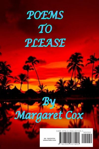 This little book of poems is a mix of my imagination and the everyday things that happen to bring a smile to the face or sadness or whatever emotion they invoke. Some convey a message or raise questions. All have been written as inspiration has flooded my mind and I have put pen to paper in the hope of bringing a pleasurable read to all who care to open these pages. Margaret Cox