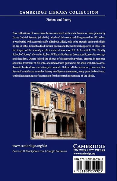 Few collections of verse have been associated with such drama as these poems by Dante Gabriel Rossetti (1828-82). Much of this work had disappeared in 1862 when it was buried with Rossetti's wife, Elizabeth Siddal, only to be brought back to the light of day in 1869. Rossetti added further poems and the work first appeared in 1870. The full impact of the sexually explicit material was soon felt. In his article 'The Fleshly School of Poetry', the writer Robert Williams Buchanan denounced Rossetti as corrupt and decadent. Others joined the chorus of disapproving voices. Steeped in remorse about his treatment of his wife, and riddled with guilt about his affair with Jane Morris, Rossetti broke down and attempted suicide. Behind all the sensation, however, lies Rossetti's subtle and complex literary intelligence attempting, many years before Freud, to find honest modes of expression for the central importance of the libido.