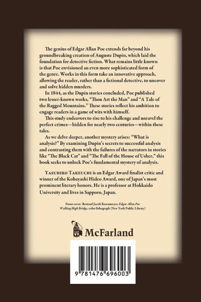 The genius of Edgar Allan Poe extends far beyond his groundbreaking creation of Auguste Dupin, which laid the foundation for detective fiction. What remains little known is that Poe envisioned an even more sophisticated form of the genre. Works in this form take an innovative approach, allowing the reader, rather than a fictional detective, to uncover and solve hidden murders. In 1844, as the Dupin stories concluded, Poe published two lesser-known works, "Thou Art the Man" and "A Tale of the Ragged Mountains." These stories reflect his ambition to engage readers in a game of wits with himself. This study endeavors to rise to his challenge and unravel the perfect crimes--hidden for nearly two centuries--within these tales. As we delve deeper, another mystery arises: "What is analysis?" By examining Dupin's secrets to successful analysis and contrasting them with the failures of the narrators in stories like "The Black Cat" and "The Fall of the House of Usher," this book seeks to unlock Poe's fundamental mystery of analysis.