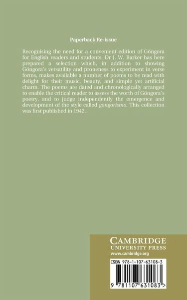 Recognising the need for a convenient edition of Góngora for English readers and students, Dr J. W. Barker has here prepared a selection which, in addition to showing Góngora's versatility and proneness to experiment in verse forms, makes available a number of poems to be read with delight for their music, beauty, and simple yet artificial charm. The poems are dated and chronologically arranged to enable the critical reader to assess the worth of Góngora's poetry, and to judge independently the emergence and development of the style called gongorismo. This collection was first published in 1942.