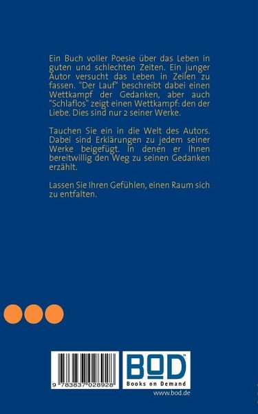"Poesie der Seele" ist ein Buch mit der Poesie eines jungen Autors, der das Leben mit seinen Worten beschreibt. Dabei fügt er eine Erklärung hinzu, wie er auf jedes seiner Werke gekommen ist. Es ist interessant zu lesen, wie sich manch ein Gedanke entwickelt hat. Aber lesen Sie selber.Dabei beinhaltet das Buch 30 seiner Werke und deren Erklärungen.