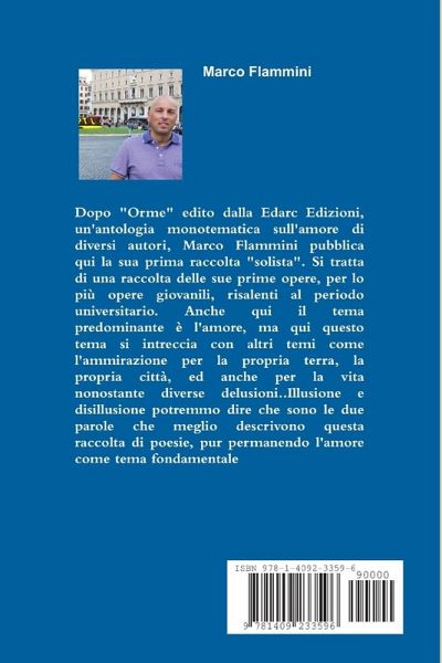 Dopo "Orme" edito dalla Edarc Edizioni, un'antologia monotematica sull'amore di diversi autori, Marco Flammini pubblica qui la sua prima raccolta "solista". Si tratta di una raccolta delle sue prime opere, per lo più opere giovanili, risalenti al periodo universitario. Anche qui il tema predominante è l'amore, ma qui questo tema si intreccia con altri temi come l'ammirazione per la propria terra, la propria città, ed anche per la vita nonostante diverse delusioni..Illusione e disillusione potremmo dire che sono le due parole che meglio descrivono questo raccolta di poesie, pur permanendo l'amore come tema fondamentale