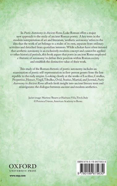 In Poetic Autonomy in Ancient Rome, Luke Roman offers a major new approach to the study of ancient Roman poetry. A key term in the modern interpretation of art and literature, 'aesthetic autonomy' refers to the idea that the work of art belongs to a realm of its own, separate from ordinary activities and detached from quotidian interests. While scholars have often insisted that aesthetic autonomy is an exclusively modern concept and cannot be applied to other historical periods, the book argues that poets in ancient Rome employed a 'rhetoric of autonomy' to define their position within Roman society and establish the distinctive value of their work. This study of the Roman rhetoric of poetic autonomy includes an examination of poetic self-representation in first-person genres from the late republic to the early empire. Looking closely at the works of Lucilius, Catullus, Propertius, Horace, Virgil, Tibullus, Ovid, Statius, Martial, and Juvenal, Poetic Autonomy in Ancient Rome affords fresh insight into ancient literary texts and reinvigorates the dialogue between ancient and modern aesthetics.
