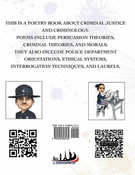 This is a poetry book about criminal justice and criminology. Poems include persuasion theories, criminal theories, and morals. They also include police department orientations, ethical systems, Interrogation techniques, and laurels. Full color illustrations