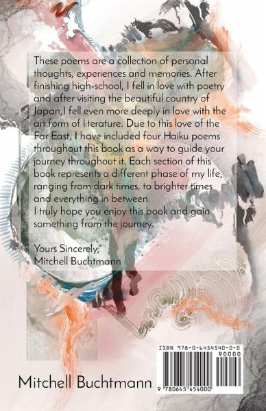 These poems are a collection of personal thoughts and experiences that I have put into four sections. After finishing high-school, I fell in love with poetry and after visiting the beautiful country of Japan, I fell even more deeply in love with the art form of literature. Due to this love for the Far East, I have included a Haiku about each section after the titular pages of each section. These poems represent different phases of my life, ranging from dark times, to brighter times and everything in between. Section one is titled The Seven Deadly Sins and seeks to shed light on some of the experiences that I have had with religion and certain struggles that I faced. I am by no means denouncing, nor praising any religion or religious practices, I am merely stating some contemplative thoughts that I have had surrounding religion. This chapter focuses on the traditional 'Seven Deadly Sins'. Section two is titled Sorrows of the Soul and looks at a variety of difficulties that one might face throughout life such as depression, anxiety and death. This section highlights a struggle that I, along with countless others in the world, have faced; that being mental illness. This chapter seeks to explore the intricacies of mental illness, and hopefully shed some light on various experiences of mental illness. Section three is titled Endearment of the Heart and showcases the positive experiences that can be enjoyed if we allow ourselves to be happy. Such a simplistic view of maturation and growth is not easy to put into words nor understand, however, for my personal journey it was all about 'letting go' and allowing myself to become a happier person and the person that I wanted to be. This chapter seeks to explore some of the happier experiences that I have enjoyed and some of the experiences that I am looking forward to enjoying in the future. Finally, Section four is titled The Meaning of it All and highlights a recently renewed interest in my Greek lineage on my mothers side. This section highlights the concepts put forth by the Founding Fathers of Greek Philosophy (and arguably all Western Philosophy), Socrates, Plato and Aristotle. After this brief introduction, I discuss the main 'branches' of philosophy. I am by no means a philosopher myself, merely pondering on some of the concepts brought forward by the great minds of our history. I hope that you enjoy reading this small collection and that they may give you something to ponder. Yours sincerely, Mitchell Buchtmann.