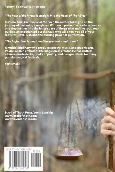 "The Path of the Mystic is straight into the Heart of The Abyss" In Poetic Law: The Temple of the Poet, the author takes you on the journey of becoming a magician. With each poem, the reader advances one step further into the inner-space of the psyche and the soul. Your guide is an experienced pyschonaut, who will show you all of your raptures - love, lust, and the burning power of purification. "The highest art is magic and the greatest magic is art" A multidisciplinary who produces poetry, music, and graphic arts, Vovin Lonshin embodies the magician as creator. He has crafted albums, oracle decks, books of poetry, and designs rituals for many popular magical festivals. #artismajik