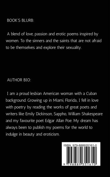 A blend of love, passion and erotic poems inspired by women. To the sinners and the saints that are not afraid to be themselves and explore their sexuality.
