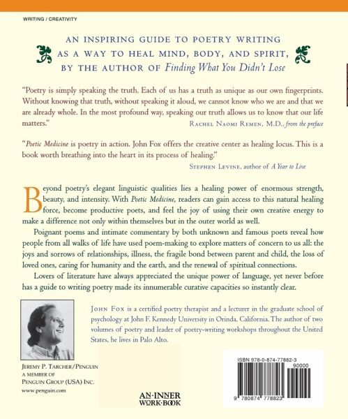 Powerful and exciting, Poetic Medicine illustrates the unique role that poem-making can have in addressing the situations that lead us to renewal in our lives. John Fox's book is designed for readers wanting to tap their creative energy in order to make a difference in the world, including educators, therapists, parents and their children, writers, couples, and the infirm. As the author demonstrates, we all possess the ability to write. This gift enables us to access unlimited spiritual resources that restore our genuine voices and meaning in our lives, while healing and creatively satisfying us. Discussed are numerous stories of people from the author's workshops who exemplify how poetry has aided them I becoming more whole. Parents understand how to use poetry to foster their relationships with their children, recognizing magical bonds that they never knew existed; persons who are ill learn how to come to terms with their diseases; and those who feel helpless in the surrounding world discover the freedom to act and affect real change. With the poetic tools, instruction, and accounts the author supplies in Poetic Medicine, readers can start now to make their own poems while addressing, acknowledging, accepting, and taking charge of their lives.