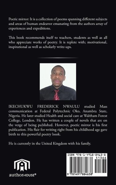 Poetic mirror: It is a collection of poems spanning different subjects and areas of human endeavor emanating from the authors array of experiences and expeditions. This book recommends itself to teachers, students as well as all who appreciate works of poetry. It is replete with; motivational, inspirational as well as scholarly write-ups.