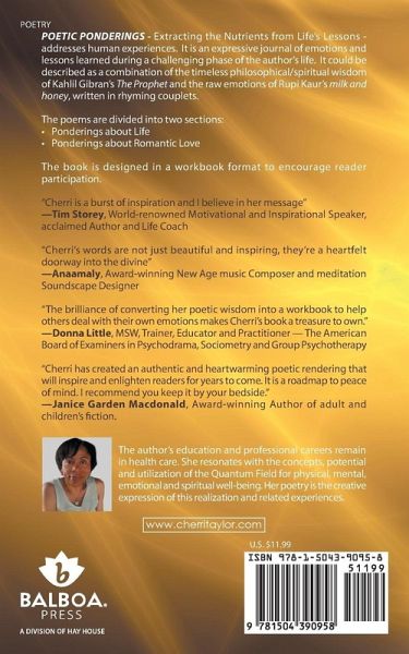 The book is a collection of rhyme-sequence poems that were spiritually presented to the author during a challenging chapter of her life. She was adjusting to the transitions of both her husband and her mother in short succession when this enlightening period ensued. The poems are divided into two sections: Ponderings about Life and Ponderings about Romantic Love. They are intended to act as catalysts for readers who may be interested in delving deeper into their own awareness. It is the fervent desire of the author that readers enjoy similar, yet unique, positive outcomes.