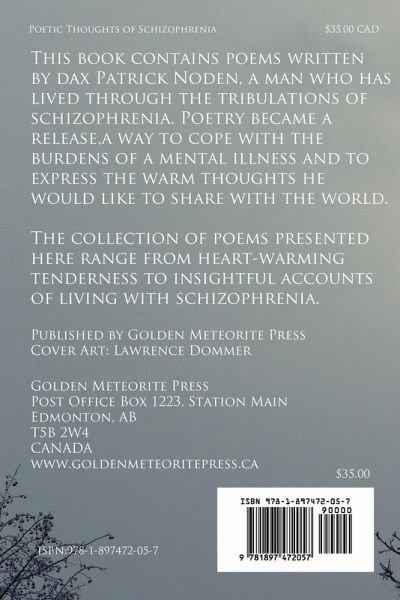 This book is a collection of poetry written by Dax Patrick Noden, a man who has survived the tribulations of schizophrenia.