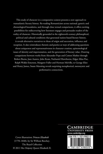 This study of character in a comparative context presents a new approach to transatlantic literary history. Rereading Romanticism across national, generic and chronological boundaries, and through close textual comparisons, it offers exciting possibilities for rediscovering how literature engages and persuades readers of the reality of character. Historically grounded in the eighteenth-century philosophical, political and cultural conditions that generated nation-based literary history, it reveals alternative narratives to those of origin and succession, influence and reception. It also reintroduces rhetoric and poetics as ways of addressing questions about uniqueness and representativeness in character creation, epistemological issues of identity and impersonation, and the generation of literary value. Drawing comparisons between works from Alexander Pope and Cotton Mather through Robert Burns, Jane Austen, John Keats, Nathaniel Hawthorne, Edgar Allan Poe, R. W. Emerson, Margaret Fuller and Herman Melville, to George Eliot and Henry James, Susan Manning reveals surprising metaphorical, metonymic and performative connections.