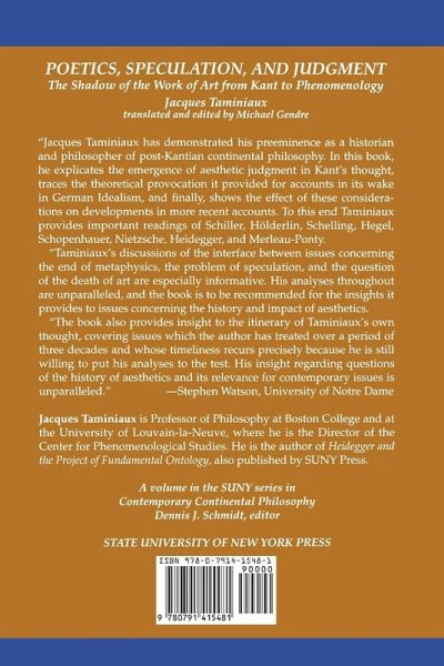 Preface 1. Speculation and Judgment 2. The Critique of Judgment and German Philosophy 3. Speculation and Difference 4. Between the Aesthetic Attitude and the Death of Art 5. The Nostalgia for Greece at the Dawn of Classical Germany 6. Fire and the Young Holderlin 7. Art and Truth in Schopenhauer and Nietzsche 8. The Hegelian Legacy in Heidegger's Overcoming of Aesthetics 9. The Origin of "The Origin of the Work of Art" 10. The Thinker and the Painter Index