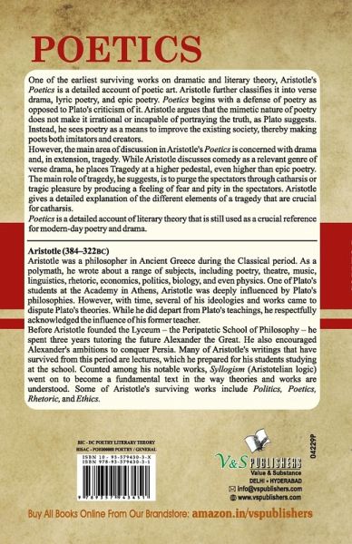 One of the earliest surviving works on dramatic and literary theory, Aristotle's Poetics is a detailed account of poetic art. Aristotle further classifies it into verse drama, lyric poetry, and epic poetry. Poetics begins with a defense of poetry as opposed to Plato's criticism of it. Aristotle argues that the mimetic nature of poetry does not make it irrational or incapable of portraying the truth, as Plato suggests. Instead, he sees poetry as a means to improve the existing society, thereby making poets both imitators and creators. However, the main area of discussion in Aristotle's Poetics is concerned with Drama and, in extension, Tragedy. While Aristotle discusses Comedy as a relevant genre of verse drama, he places Tragedy at a higher pedestal, even higher than Epic Poetry. The main role of Tragedy, he suggests, is to purge the spectators through catharsis or tragic pleasure by producing a feeling of fear and pity in the spectators. Aristotle gives a detailed explanation of the different elements of a Tragedy that are crucial for catharsis. Poetics is a detailed account of literary theory that is still used as a crucial reference for modern-day poetry and drama.