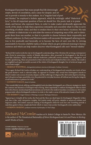 Kierkegaard lamented that many people find life distressingly empty, devoid of consolation, and a cause for despair; and set out to provide a remedy to this malaise. As a "singular kind of poet and thinker," he employed a holistic approach, which he strikingly called "dialectical lyric," to the all-important question of how we should live. His poetic task is to praise ideals, and heroes who represent them, in order to make readers profoundly appreciate the worth of the ideals, to help them experience intimately and concretely what it is like to serve something of infinite value, and thus to awaken them to their own heroic vocations. His task as a thinker or dialectician is to articulate the essence of competing ways of life, and to distinguish them from one another, so that it is possible to choose between them responsibly and without confusion. In Poetry and Heroism readers will encounter Kierkegaard's alluring invitation to live poetically and heroically, or to become the hero of one's own life, by striving passionately to become a faithful replica of ideals which can give profound meaning to human existence and which can help readers discover what Kierkegaard calls one's "eternal validity."