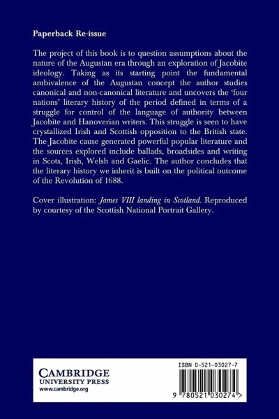The project of this book is to question and rewrite assumptions about the nature of the Augustan era through an exploration of Jacobite ideology. Taking as its starting point the fundamental ambivalence of the Augustan concept the author studies canonical and non-canonical literature and uncovers a new 'four nations' literary history of the period defined in terms of struggle for control of the language of authority between Jacobite and Hanoverian writers. This struggle is seen to have crystallized Irish and Scottish opposition to the British state. The Jacobite cause generated powerful popular literature and the sources explored include ballads, broadsides and writing in Scots, Irish, Welsh and Gaelic. The author concludes that the literary history we inherit is built on the political outcome of the Revolution of 1688.