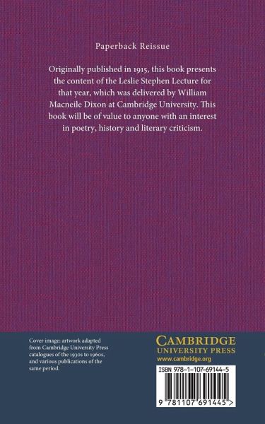 Originally published in 1915, this book presents the content of the Leslie Stephen Lecture for that year, which was delivered by William Macneile Dixon at Cambridge University. This book will be of value to anyone with an interest in poetry, history and literary criticism.