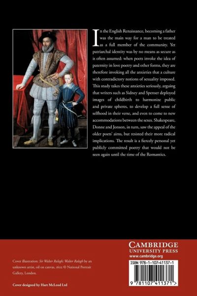 Becoming a father was the main way that an individual in the English Renaissance could be treated as a full member of the community. Yet patriarchal identity was by no means as secure as is often assumed: when poets invoke the idea of paternity in love poetry and other forms, they are therefore invoking all the anxieties that a culture with contradictory notions of sexuality imposed. This study takes these anxieties seriously, arguing that writers such as Sidney and Spenser deployed images of childbirth to harmonize public and private spheres, to develop a full sense of selfhood in their verse, and even to come to new accommodations between the sexes. Shakespeare, Donne and Jonson, in turn, saw the appeal of the older poets' aims, but resisted their more radical implications. The result is a fiercely personal yet publicly-committed poetry that wouldn't be seen again until the time of the Romantics.