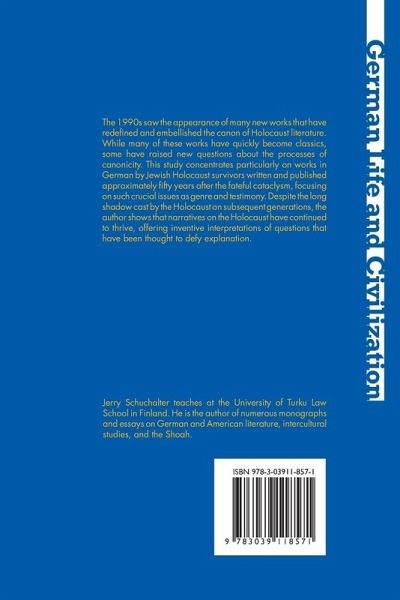 The 1990s saw the appearance of many new works that have redefined and embellished the canon of Holocaust literature. While many of these works have quickly become classics, some have raised new questions about the processes of canonicity. This study concentrates particularly on works in German by Jewish Holocaust survivors written and published approximately fifty years after the fateful cataclysm, focusing on such crucial issues as genre and testimony. Despite the long shadow cast by the Holocaust on subsequent generations, the author shows that narratives on the Holocaust have continued to thrive, offering inventive interpretations of questions that have been thought to defy explanation.