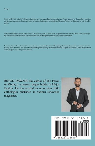 Synopsis This is book which is full of collection of poems. Here you can read about songs of poems. Poems takes you to the another world. You can forgot your tension and enjoy. You begin to dance and climb up by hearing beautiful music of poems. All things can be interpreted by poems. So I have think about listeners and readers so I create these poems for them. From my spiritual soul to connect in other souls of the people. I play with words and letters here. I use my imaginations and thoughts here to create a beautiful composition. If we can think and use the words the words becomes our world. Words can tell anything. Nothing is impossible to elaborate or narrate through words. So I have also narrated such beautiful poems by using my wonderful words. I hope these poems can enter into heart and soul of people as well as they love it so much.