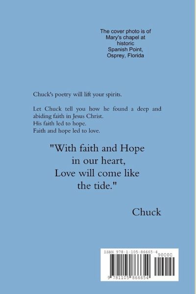 Chuck's Poems are filled with faith, hope and love. Reading them lifts your spirits and gives you a new hope filled "Attitude" about life. Chuck tells you how it is as easy as pie to turn a life from anger to love. Take a journey with Chuck and find joy.