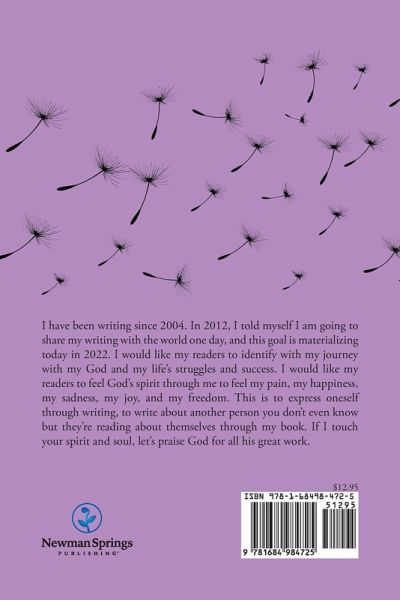 I have been writing since 2004. In 2012, I told myself I am going to share my writing with the world one day, and this goal is materializing today in 2022. I would like my readers to identify with my journey with my God and my life's struggles and success. I would like my readers to feel God's spirit through me to feel my pain, my happiness, my sadness, my joy, and my freedom. This is to express oneself through writing, to write about another person you don't even know but they're reading about themselves through my book. If I touch your spirit and soul, let's praise God for all his great work.