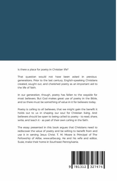 Poetry plays an important role in the Bible, and this suggests it should have some role in the life of Christian faith. The essay in this book argues that Christians today must rediscover the role of poetry in the life of faith, and that some, at least, should be open to receiving a calling to poetry as part of their service to the Lord.