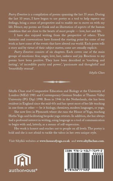 Poetry Emotion is a compilation of poems spanning the last 35 years. During the last 10 years, I have begun to use poetry as a tool to help express my feelings, bring a sense of perspective and to enable me to move on with my life. Hence, my poems are frank and an illustration of aspects of the human condition that are close to the hearts of most people - love, lust and life. I have also enjoyed writing from the perspective of others. Their fantasies and conversations have formed the starting point for some of my work as have some of the events that have altered our world. Each poem tells a story and by virtue of their subject matter, some are sexually explicit. Poetry Emotion consists of six chapters. Each covers one of the main groups of emotions: fear, anger, love, lust, sadness and joy. Reactions to my poems have been positive. They have been described as 'touching and lasting', 'of incredible purity and power', 'passionate and thoughtful' and 'beautifully sensual'. -Sibylla Chan