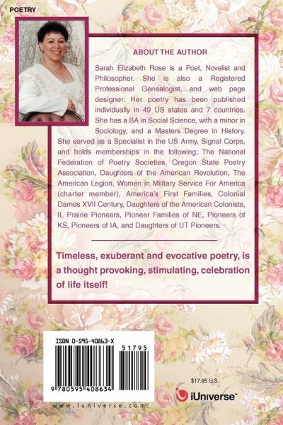 The best poetry is all about imagery. When you can "see" the poem, you can experience it fully. LIFETIMES OF DELIGHT In the beginning you fed me beautiful bits of roasted goat dipped into luminous gold bowls of cherry sauce. We lived a long and rapturously happy life in the mountains. As forest dwellers I braided my hair with wildflowers beneath the full moon, while watching you sprinkle your assortment of magical herbs into our dinner of deer, salad, and roots. Tonight I learned of saffron The city found us cold and poor but never hungry / while others starved you knew instinctively where to find food. We dined on baked squirrel & pigeon stuffed with wild lettuce and nuts topped with mint sauce. I was happiest on the coast / where daily we enjoyed a delightful mixture of wild onions, garlic, fish, eel, and crabs, wrapped in banana leaves and slow cooked inside salt bricks placed beneath our fire. This time around finds us in the countryside, and you in the kitchen preparing specialties from many countries / We eat desserts garnished with edible flowers sprinkled with sugar, served on fine lace in demitasse cups.